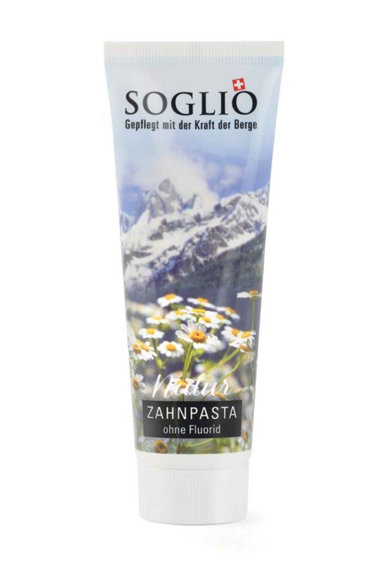 Die speziell für SOGLIO entwickelte Naturzahnpasta enthält einen Grüntee extrakt für die schonende Zahnhygiene. Der Kamillenextrakt pflegt zusätzlich das Zahnfleisch. Für das frische Aroma sorgen Pfefferminzöl und ein Süssholzextrakt.